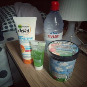 • aloe vera e crema 50+ per via delle ustioni di secondo grado dopo il primo giorno di mare;