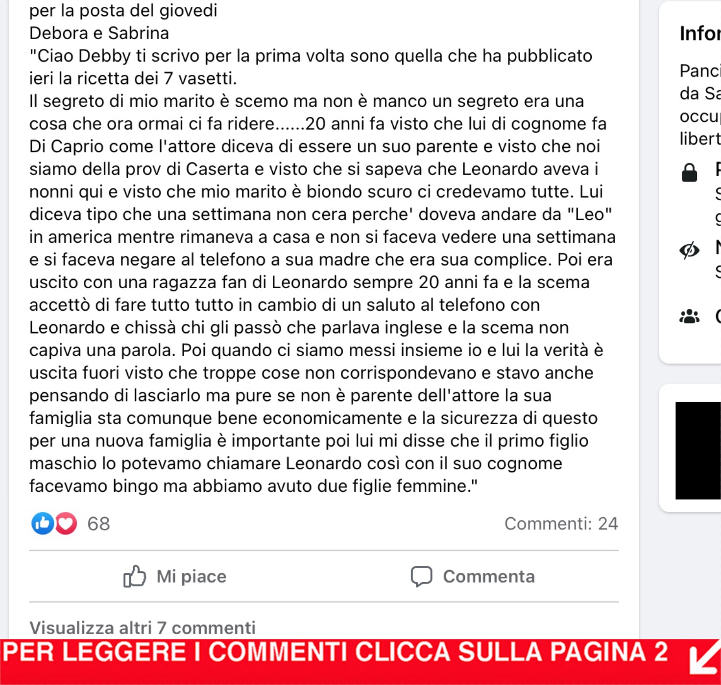 Per leggere i commenti a questa fantastica storia d’amore cliccate sul 2 qui sotto o su questo link.