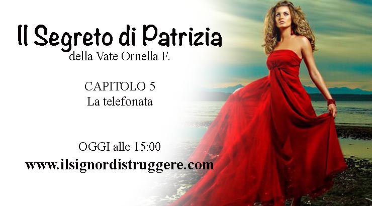 19/07/2018Il segreto di PatriziaSaghe & Manipolazioni Il SEGRETO DI PATRIZIA CAP 5 – La telefonata Nuovo capitolo del romanzo "Il Segreto di Patrizia", per iniziare questa fantastica storia dal capitolo…Continua a leggere